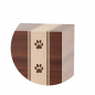 Cette urne en bois massif de haute qualité - couleur acajou, en forme de pavé est plaquée d´un bois véritable et décorée avec une bande de pattes. Les empreintes de pattes se trouvent sur le devant et l'arrière de l'urne.