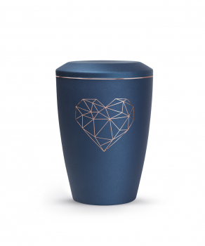 Cette urne en métal avec une surface satinée et brillante et un motif géométrique d´un coeur et d´une bande décorative cuivré (autocollant). L'urne est disponible dans les tailles 0,5 l, 1,5 l et 2,8 l et en 6 couleurs différentes. Les cendres se placent à l'intérieur, avec ou sans sachet plastifié (non fourni).